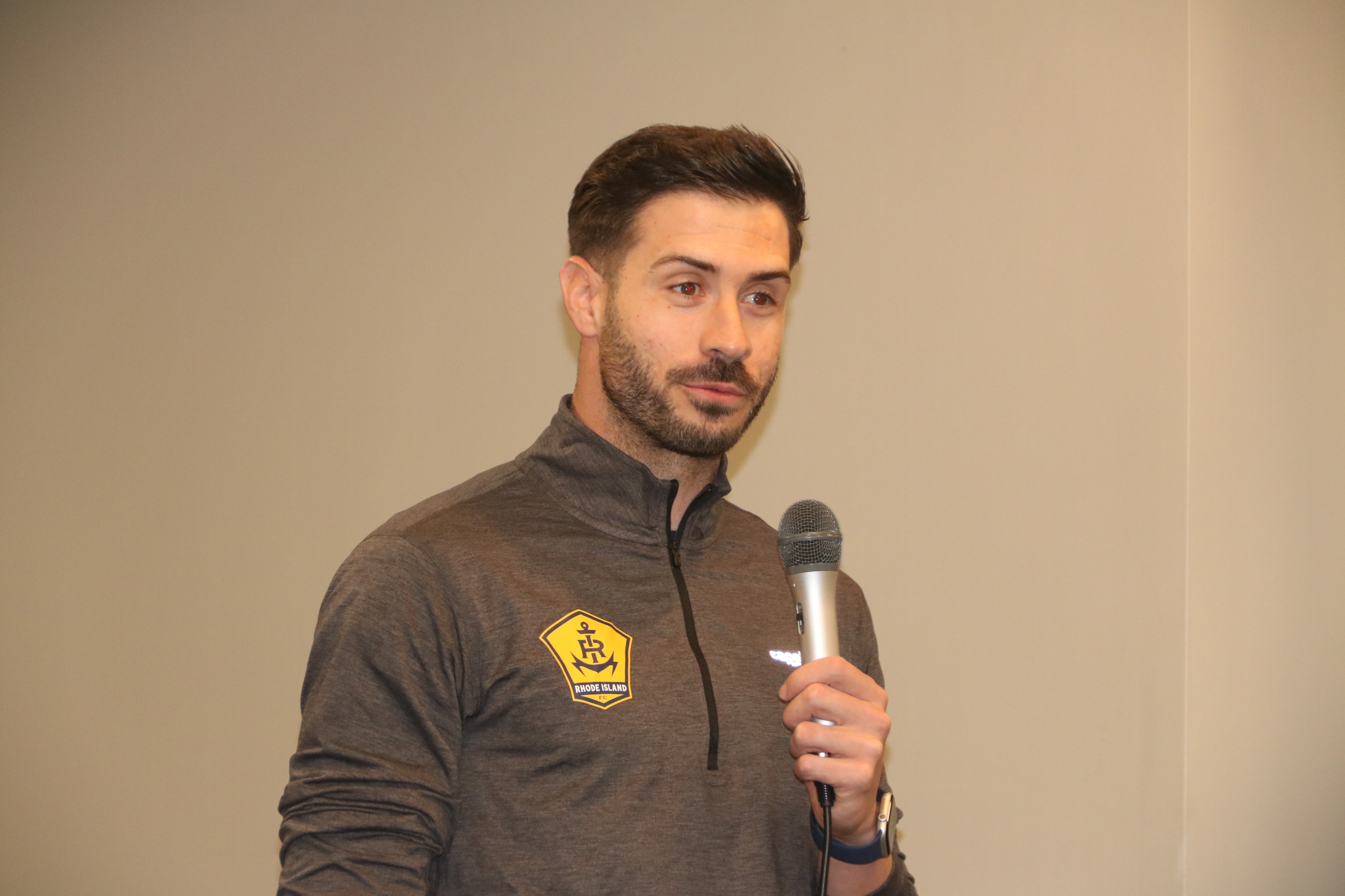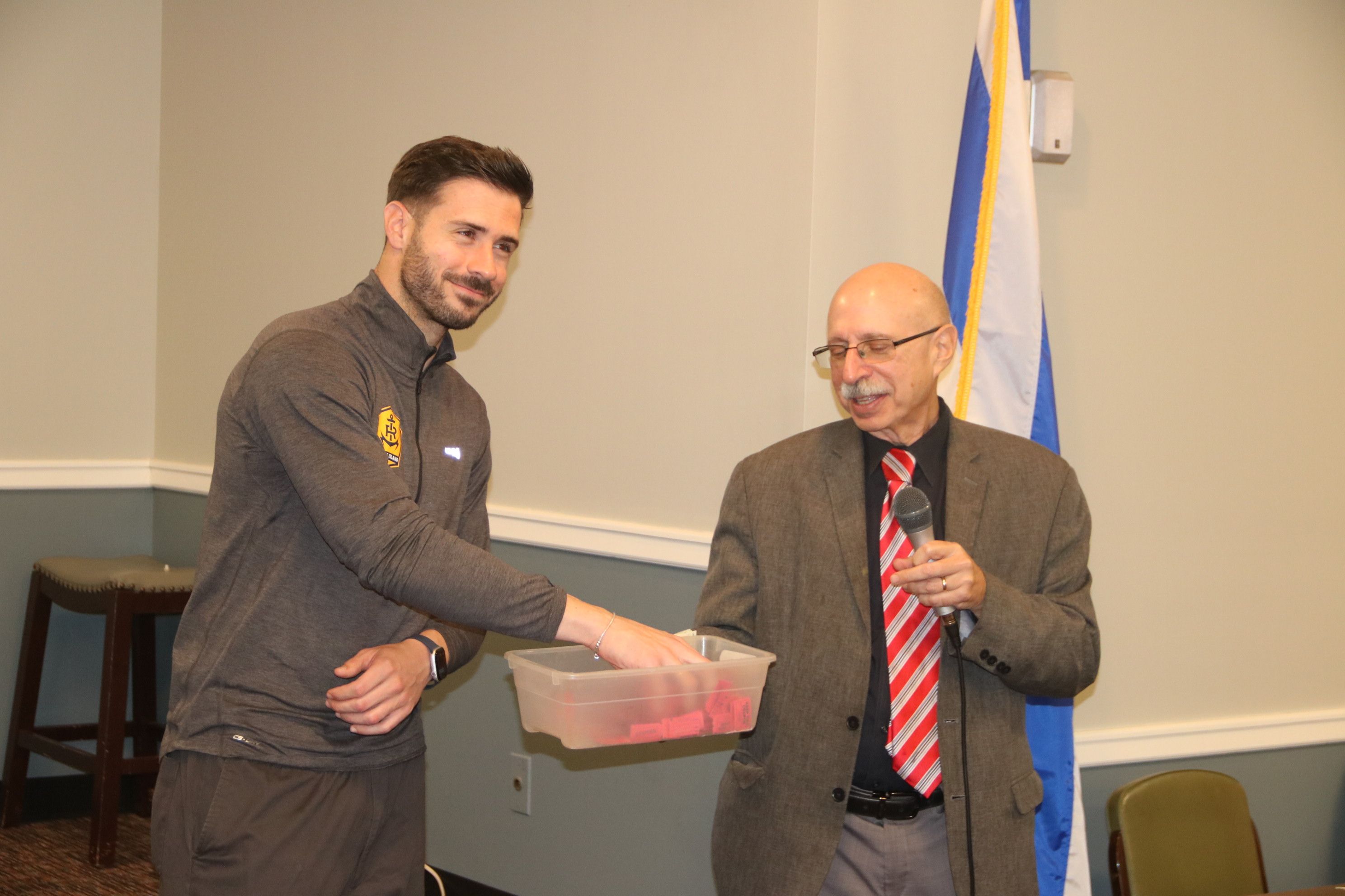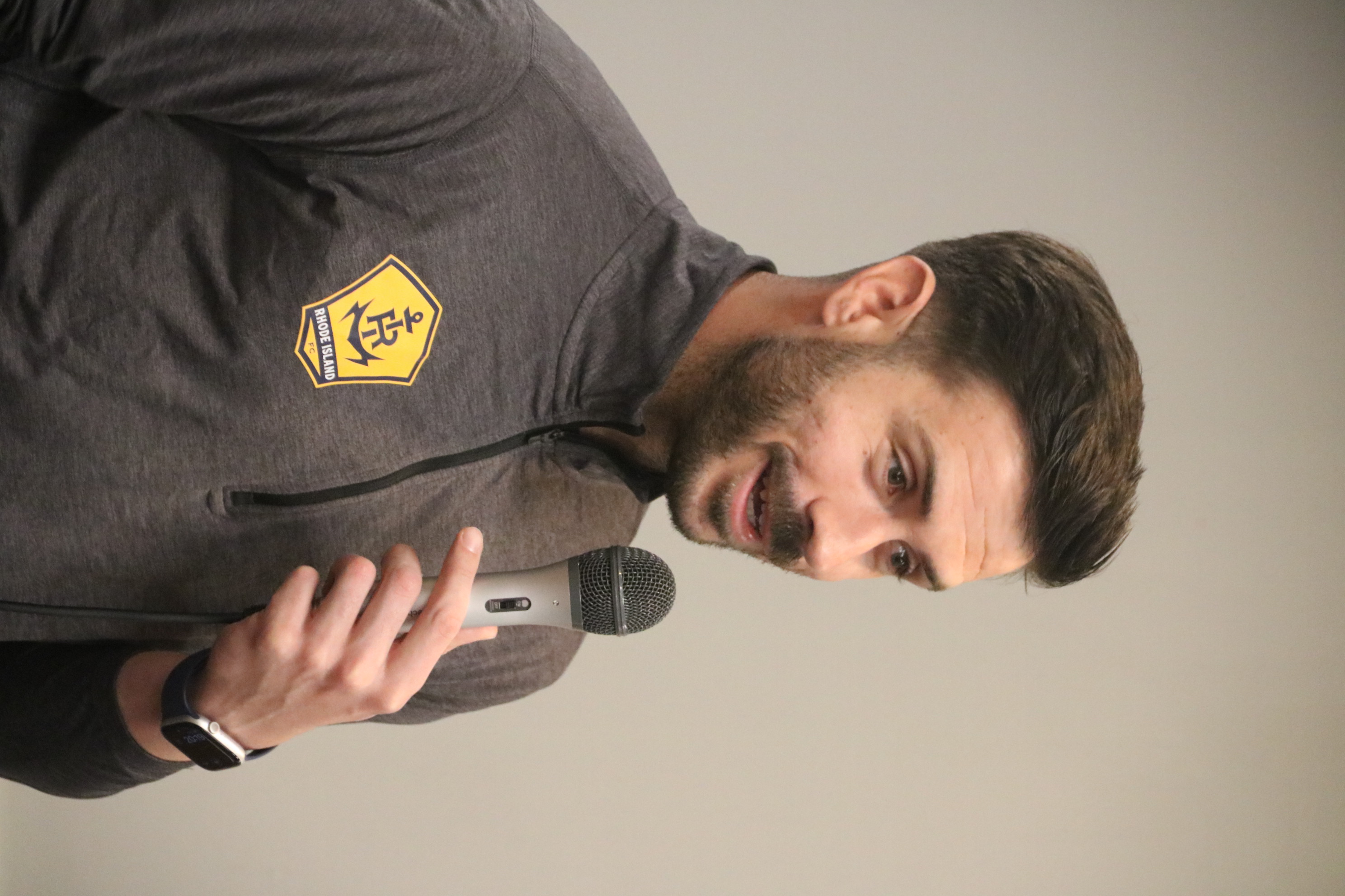 Rhode Island's professional soccer team, the RI Football Club, was represented by Goalkeeper Koke Vegas, who was the guest speaker at the Harmony Lodge meeting at Touro Hall on March 18, 2026. After two new brothers were initiated, the 70 attendees enjoyed a baked chicken dinner.