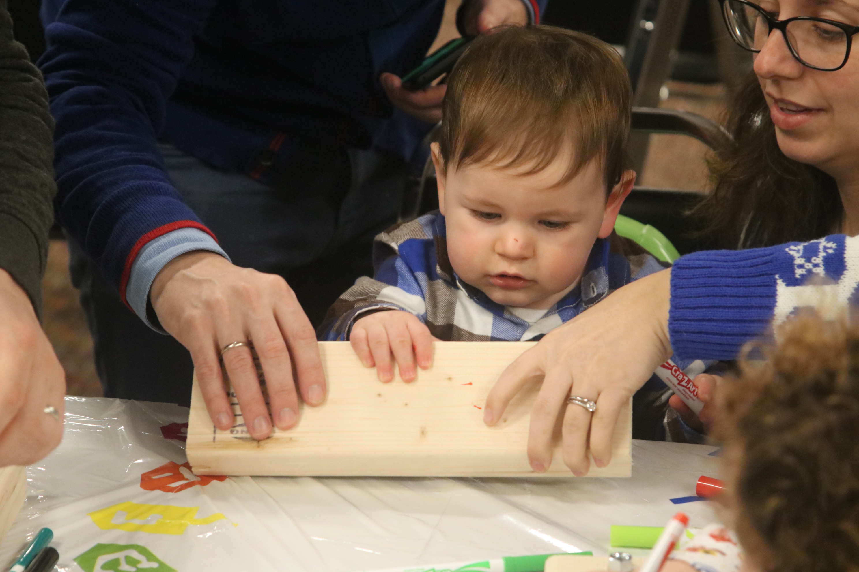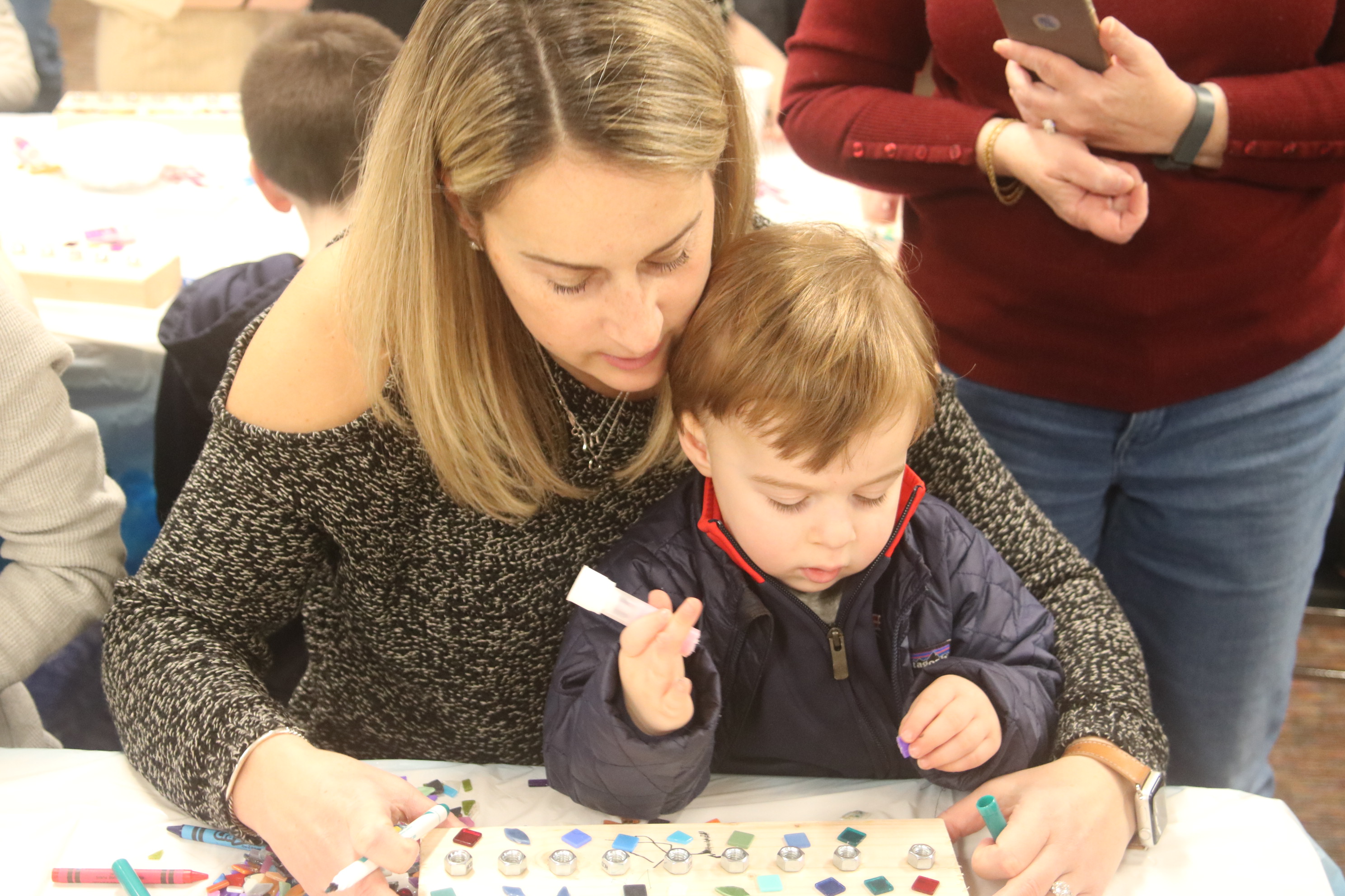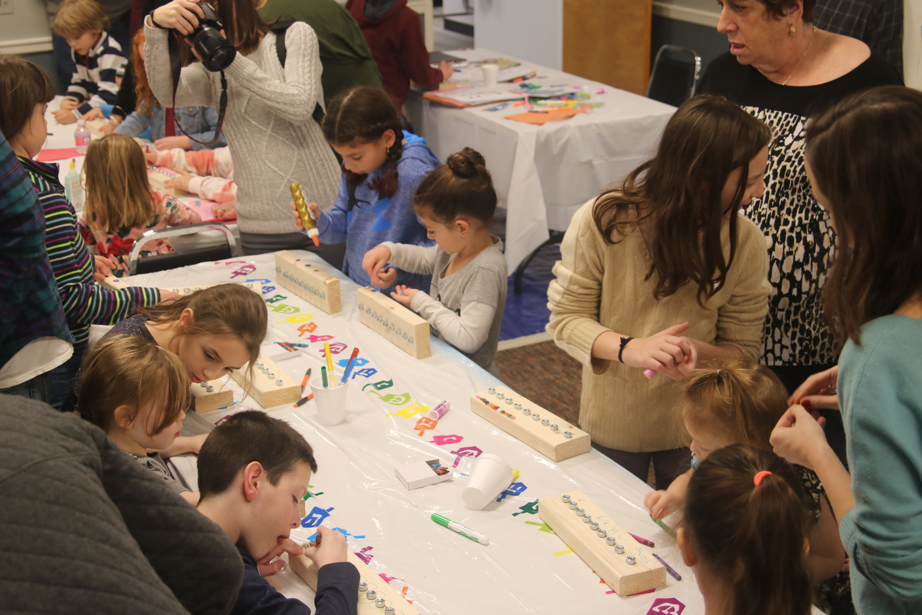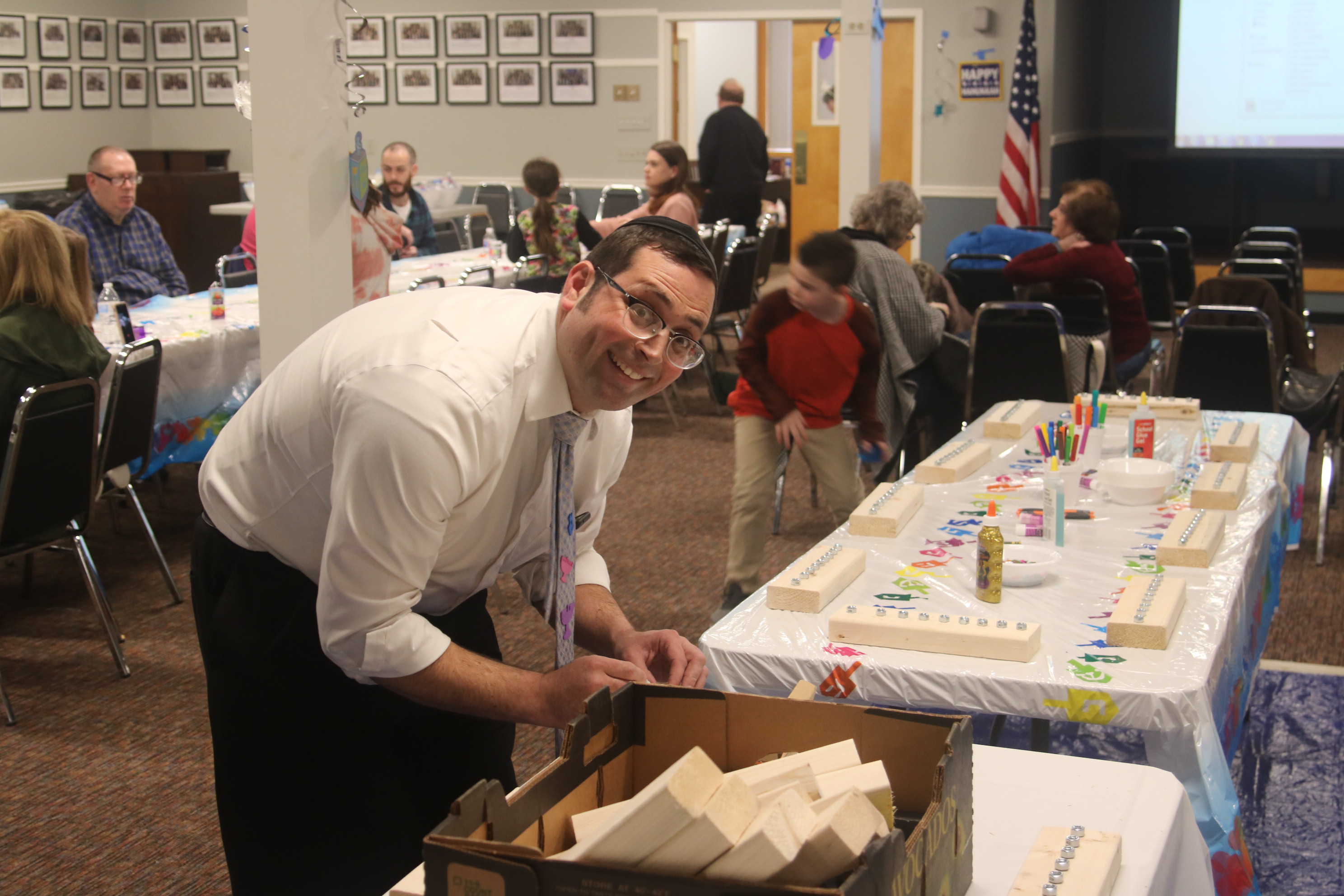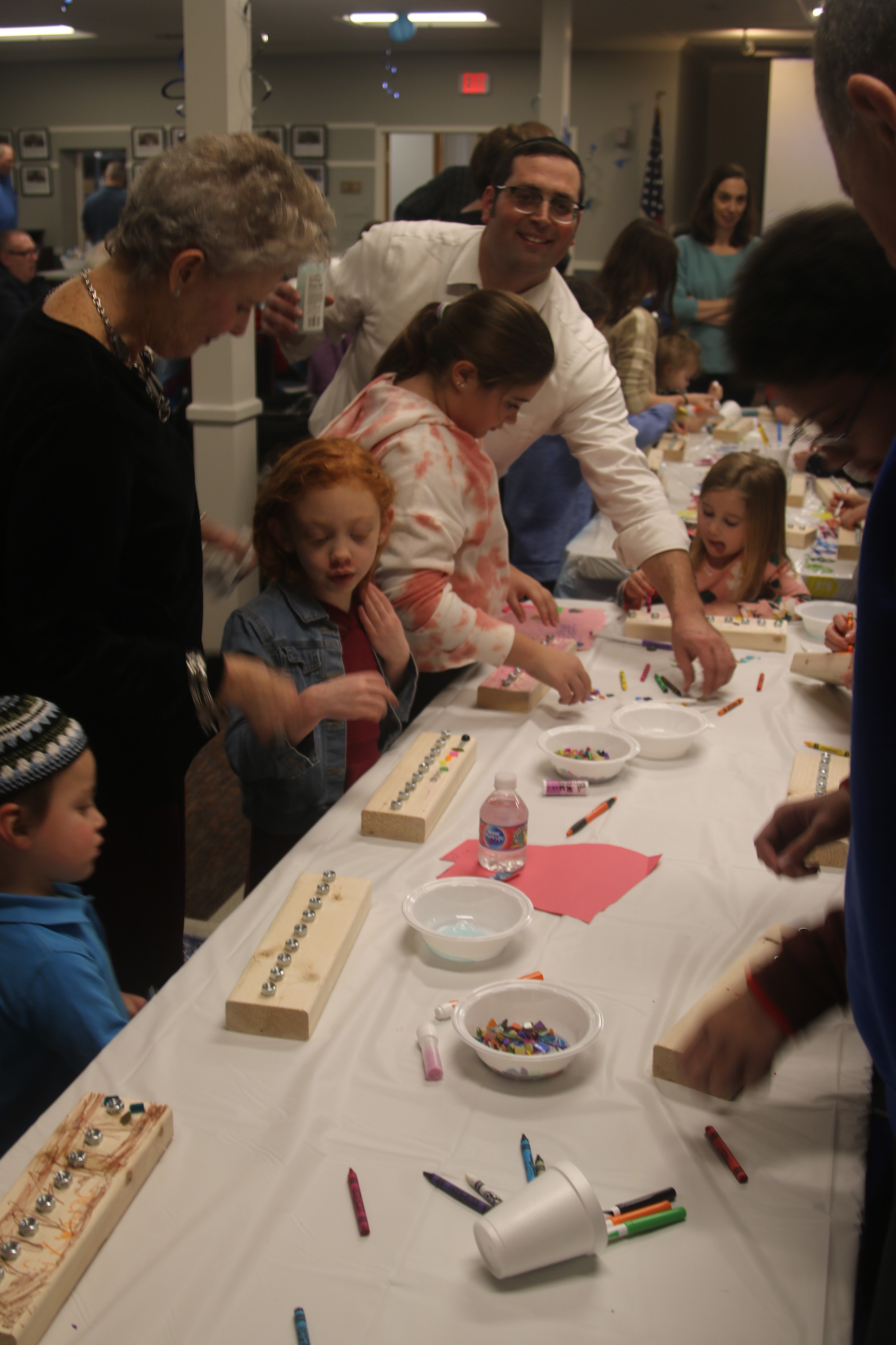Noach Karp, a Touro member, led children in making menorahs and dreidels at the Chanukah Party at Touro Hall on December 15, 2019.