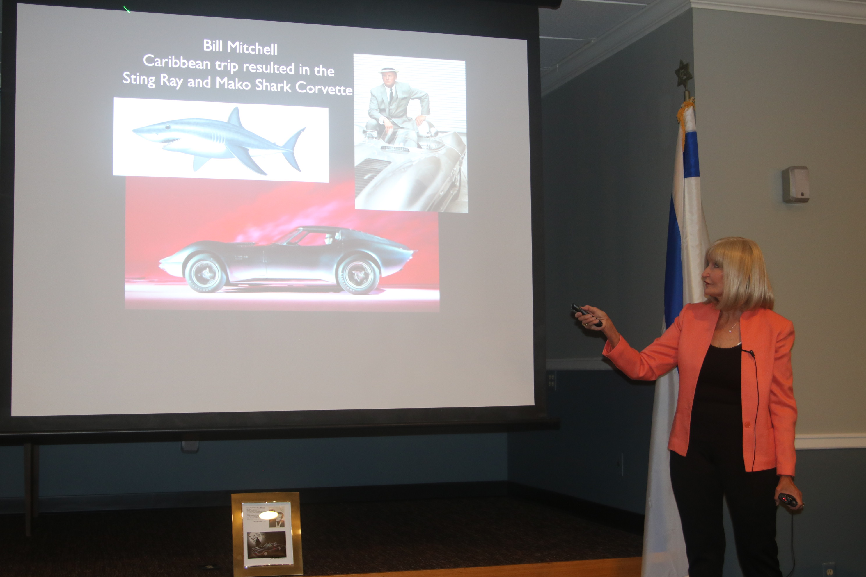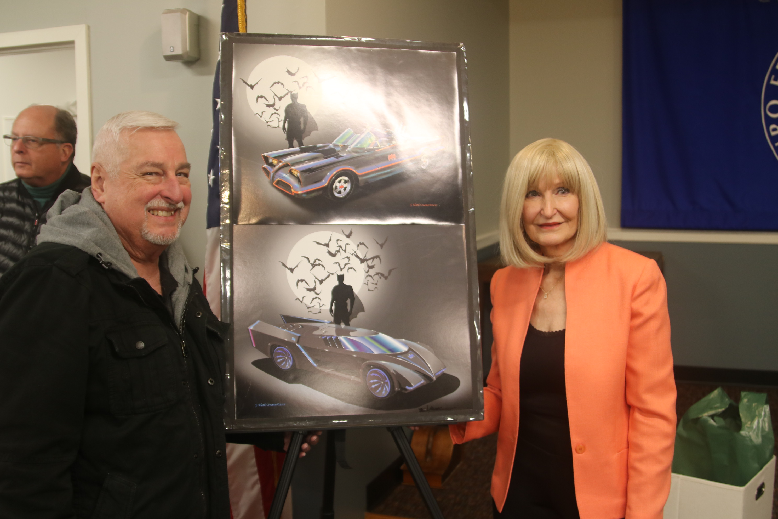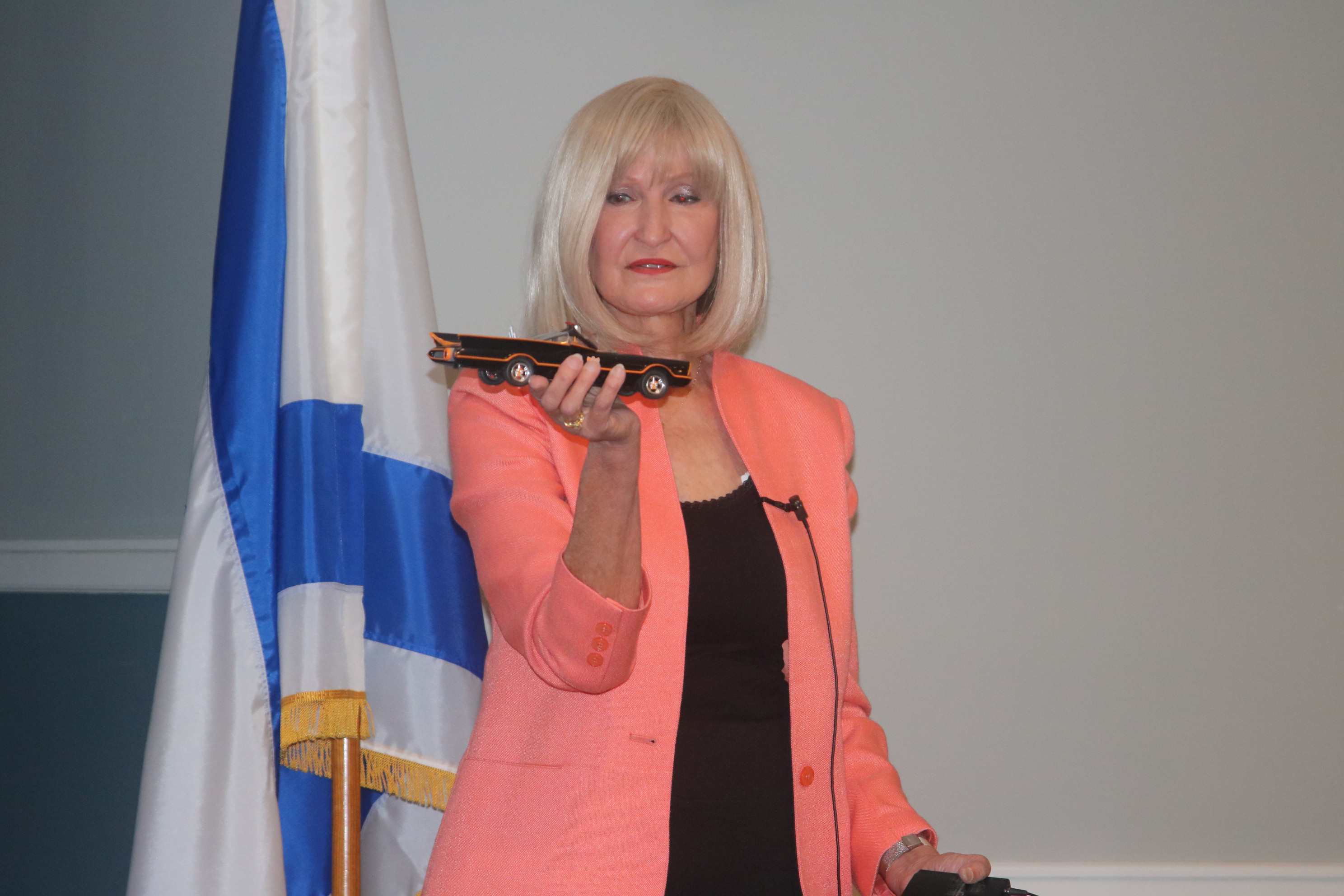 Joan Creamer, a former designer for General Motors, talked about the Batmobile and other projects she worked on, at the Friendship Lodge meeting on January 18, 2023.