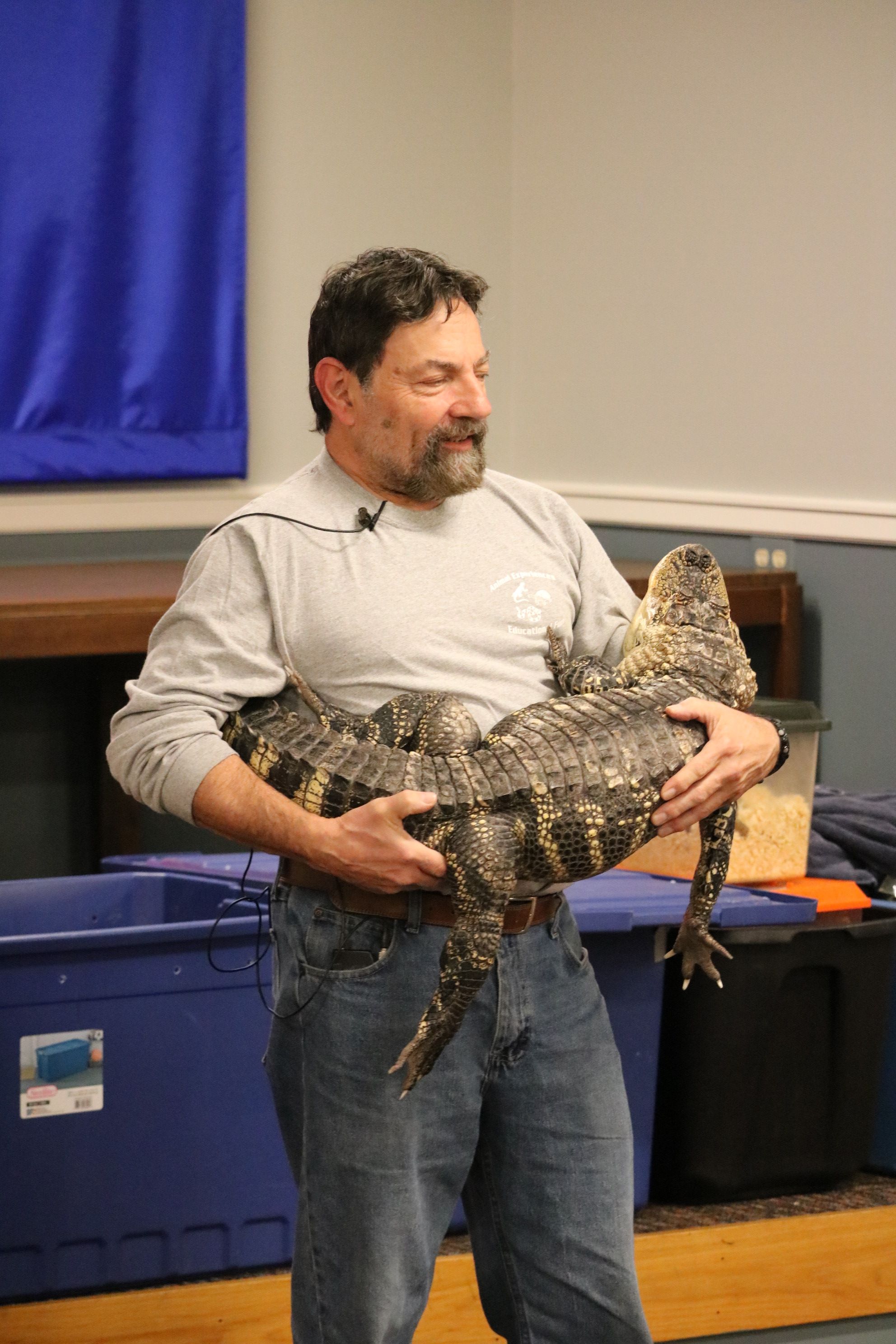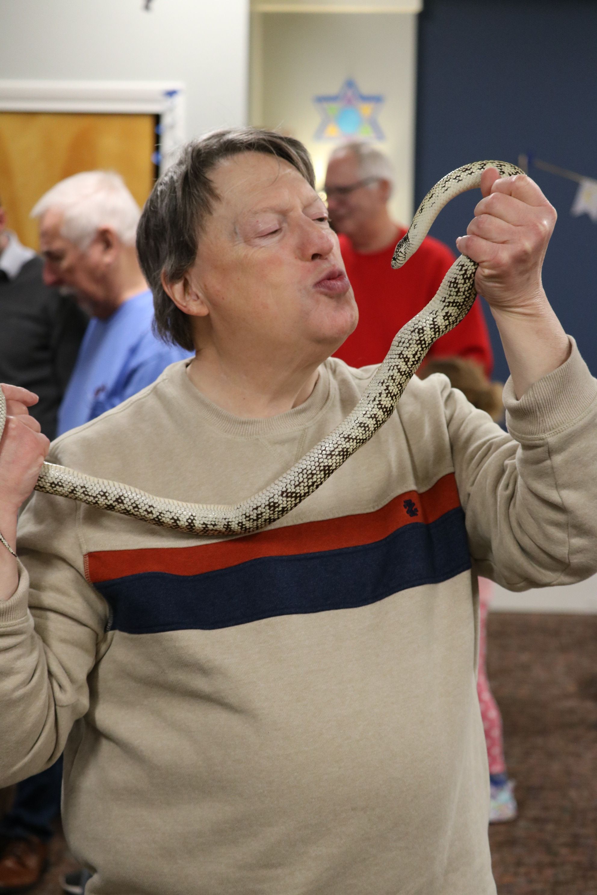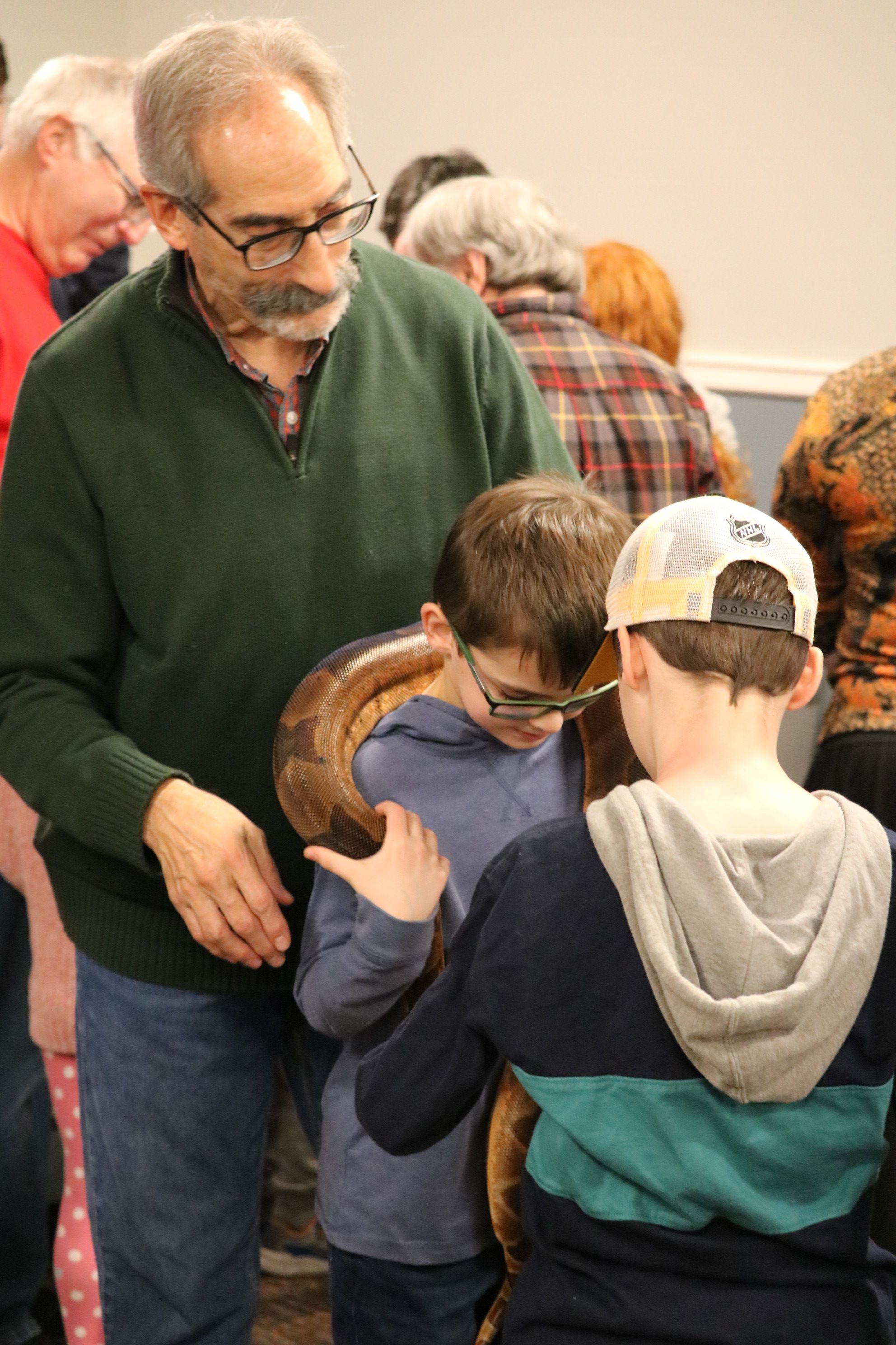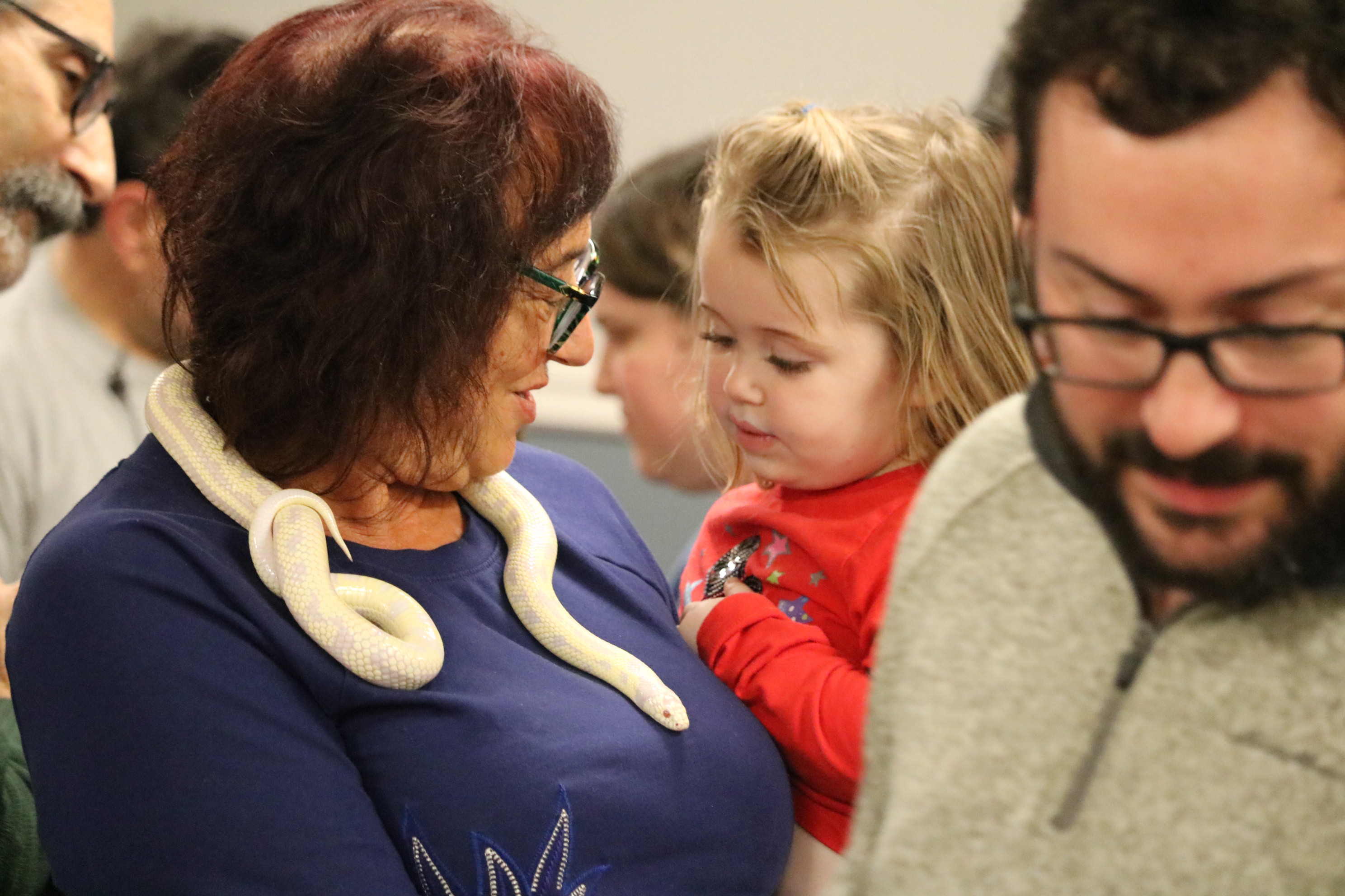 About 100 Touro members and guests, including dozens of children and grandchildren, enjoyed the Chanukah Family Party featuring Dave Marchetti's Animal Experiences on December 3, 2023 at Touro Hall. After eating hot dogs, latkes, cookies and cupcakes, the children interacted with turtles, snakes, lizards and a bunny, while seeing an alligator up close.