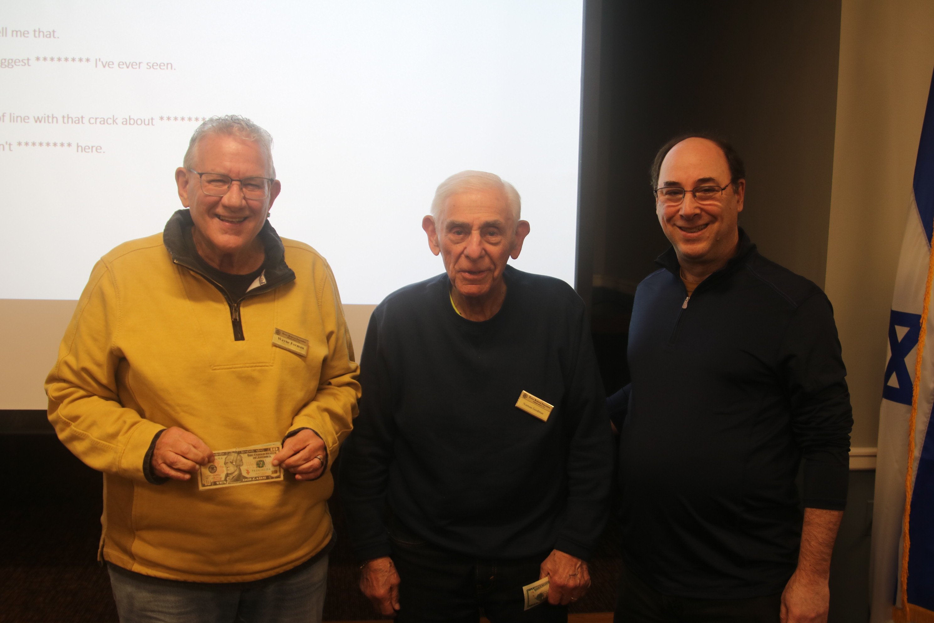 Harmony Lodge hosted a meeting and Trivia Night on December 20, 2023 at Touro Hall. After a meatloaf dinner, Chairman Emeritus Jed Brandes hosted challenging trivia questions in four categories. The winners, receiving a cash prize of $150, were Barry Schiff and Jeffrey Davis.